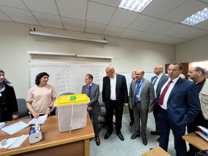 وأجرى رئيس اللجنة العليا للانتخابات الدكتور زياد الحوامدة جولة تفقدية على مراكز الاقتراع، رافقه فيها عميد شؤون الطلبة الدكتور صفوان الشياب، وعدد من مسؤولي الجامعة.