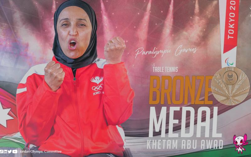 حصدت لاعبة المنتخب الوطني لكرة الطاولة البارالمبية ، ختام أبو عوض ، على الميدالية البرونزية ، في دورة الألعاب البارالمبية (طوكيو ٢٠٢٠).