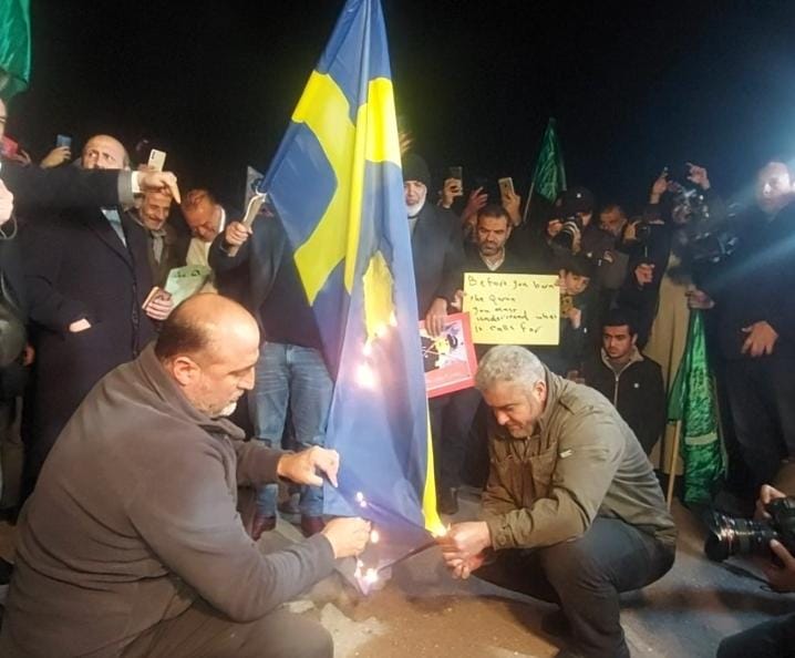 والسبت، أحرق زعيم حزب “الخط المتشدد” الدنماركي اليميني المتطرف راسموس بالودان، نسخة من القرآن قرب السفارة التركية في ستوكهولم، وسط حماية مشددة من الشرطة التي منعت اقتراب أي أحد منه أثناء ارتكابه العمل الاستفزازي والمسيء.