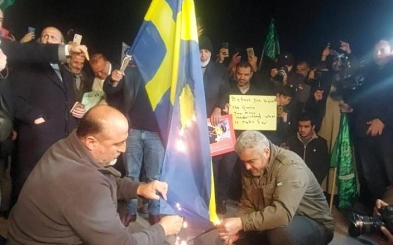 احرق مواطنون محتجون مساء الأثنين علم دولة السويد امام السفارة السويدية في عمان تنديدا بحرق نسخة من القرآن الكريم في العاصمة ستوكهولم.