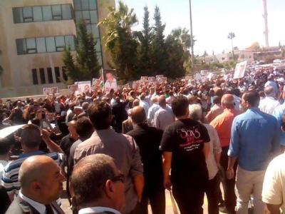 اعتصم العشرات من أهالي مدينة الفحيص أمام رئاسة الوزراء الاثنين، احتجاجا على مقتل الكاتب الصحفي ناهض حتر.