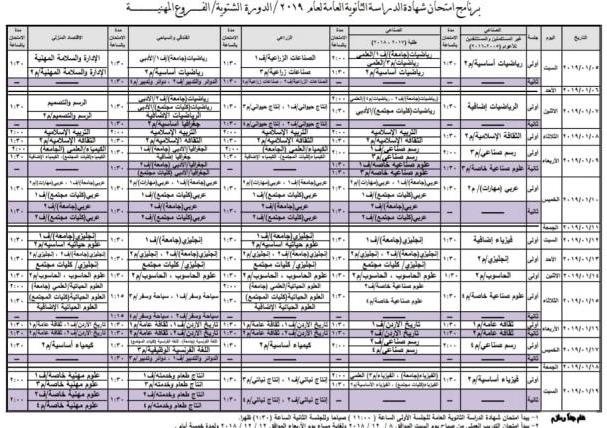 أعلنت وزارة التربية والتعليم الأربعاء، جدول امتحان شهادة الدراسة الثانوية العامة للدورة الشتوية المقبلة لجميع الفروع الأكاديمية والمهنية بمشاركة 73104 مشترك ومشتركة. و يبدأ الامتحان في الخامس من شهر كانون ثاني المقبل وينتهي في التاسع عشر من ذات الشهر، حيث تبدأ الجلسة الأولى للامتحان الساعة الحادية عشرة صباحا، فيما تبدأ الجلسة الثانية الساعة الواحدة والنصف ظهرا. و خصصت هذه الدورة من الامتحان للطلبة غير المستكملين لمتطلبات النجاح، والطلبة الراغبين في رفع معدلاتهم ، والطلبة المستنفدين حقهم في الأعوام من 2005 الدورة الشتوية حتى 2018 الدورة الصيفية.