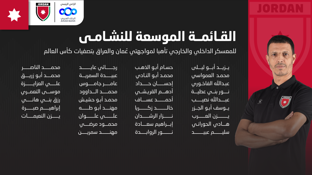 إعلان قائمة النشامى الموسعة لمواجهتي عُمان والعراق بتصفيات كأس العالم