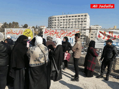 ورفعت المعتصمات من أمهات وذوي الموقوفين، يافطات تدعو إلى إصدار قانون عفو عام شعبي شامل، والافراج عن المساجين.