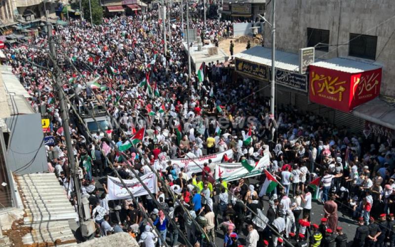 شارك عشرات آلاف الأردنيين في المسيرة الجماهيرية الحاشدة التي انطلقت بعد صلاة ظهر الجمعة من أمام المسجد الحسيني تحت شعار "الطوفان الشعبي"، نصرة للمقاومة الفلسطينية ودعما للأهل في قطاع غزة الذين يتعرضون لحرب إبادة يشنّها جيش الاحتلال منذ نحو أسبوع وراح ضحيتها نحو (1600) شهيد.