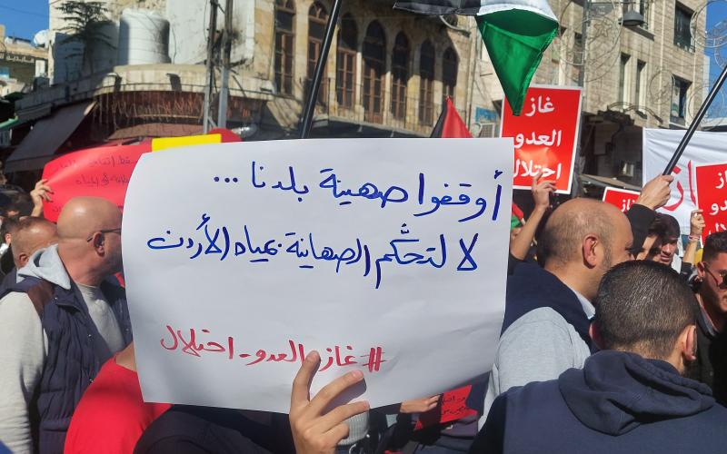 عقب إعلان الأردن وإسرائيل توقيع مذكرة تفاهم لتبادل "الماء مقابل الكهرباء" مع إسرائيل احتج مواطنون أردنيون رفضا للمذكرة التفاهم.