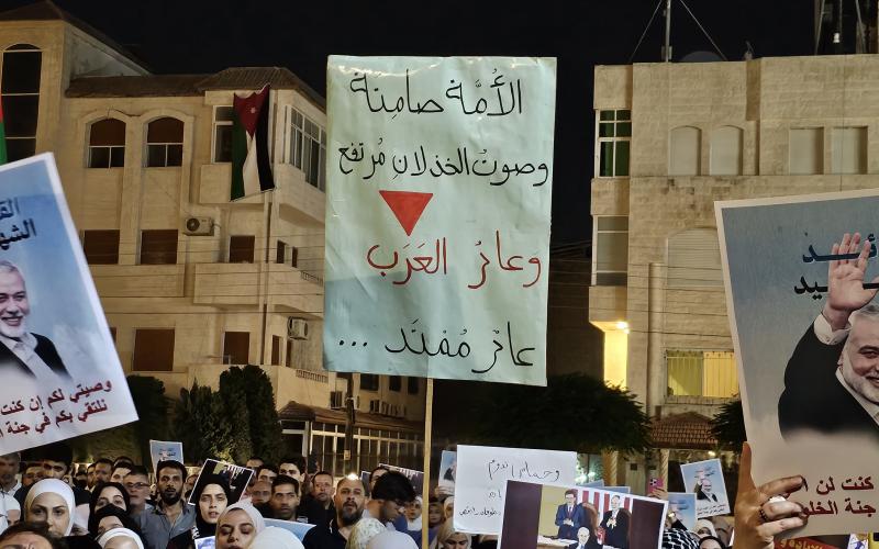 على مدى الأسبوع الماضي، أشعل اغتيال رئيس المكتب السياسي لحركة حماس إسماعيل هنية في 31 يوليو الاحتجاجات أمام السفارة الإسرائيلية في العاصمة عمان، على الرغم من محاولات السلطات الأردنية اعتقال الناشطين المؤيدين لفلسطين والإسلاميين.
