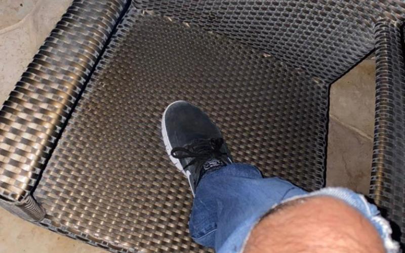 وأرفقت حبش صورة للتغريدة تظهر قدمها والبنطال الذي كانت ترتديه.