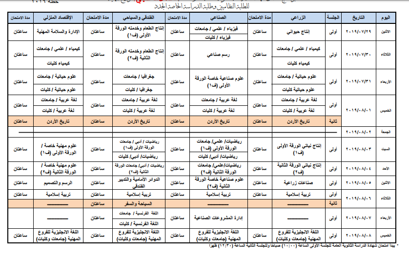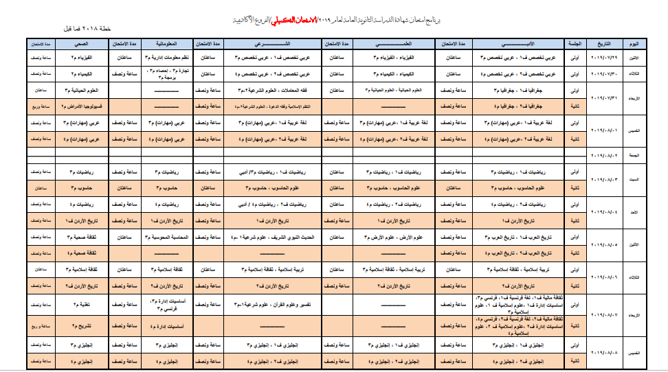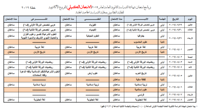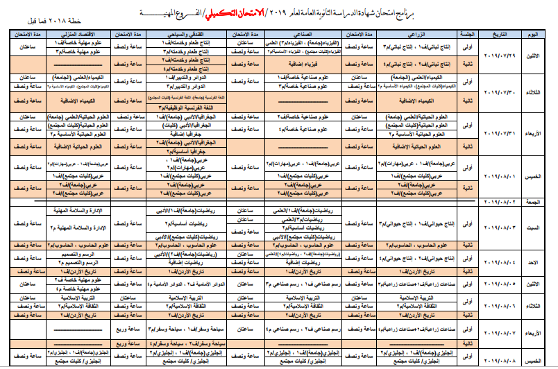 أعلنت وزارة التربية والتعلم اليوم الثلاثاء جدول امتحان شهادة الدراسة الثانوية العامة لعام 2019 / الامتحان التكميلي لجميع الفروع الأكاديمية والمهنية.