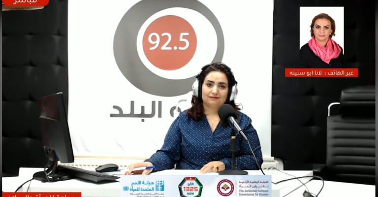 وتحدث خلال برنامج (ساعة للمرأة والسلام) عن الخطة الاردنية لتنفيذ قرار ١٣٢٥ والتي اعدتها اللجنة الوطنية لشؤون المرأة وذلك عبر مراحل تمت خلال ثلاث سنوات من شركات (الائتلاف الوطني) المتمثلة بالمؤسسات الحكومية والمدنية والأمنية .