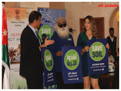 عمان نت ( علي جادالله ) - يزور معلم اليوغا الهندي "سادجورو" المعروف عالمياً الأردن و أماكن مختلفة في العالم وهو يقود دراجته النارية ويجتاز المسافات كي يضمن مستقبل أفضل للعالم ويقول "انقذوا التربة " هذا ما دفع سادجورو لأن يُطلق تحرُّكًا لإحياء تربة العالم، والمياه، والزراعة المستنزفة بشدة.