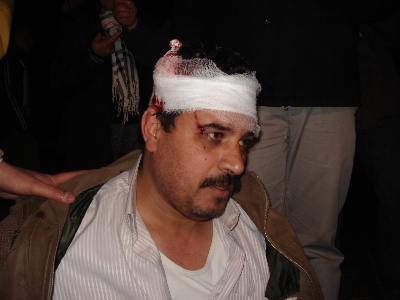 خلف رشق الحجارة الذي تعرض له "شباب 24 آذار" قبيل منتصف ليل الخميس من قبل مناهضين لاعتصامهم المتواصل على ميدان جمال عبد الناصر (دوار الداخلية) منذ الصباح عشرات الإصابات، وصفت بعضها بالخطيرة.
