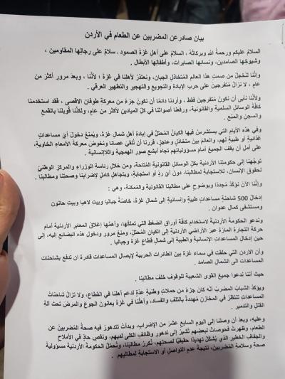المضربون عن الطعام في الأردن: نحمل الحكومة مسؤولية صحة المشاركين وهذه مطالبنا