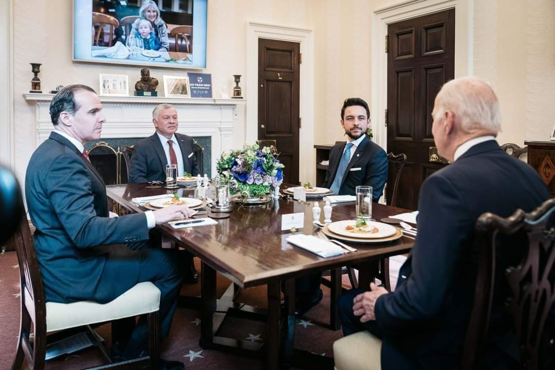 وشدد، خلال اللقاء الذي عقد في البيت الأبيض، بحضور الأمير الحسين بن عبدالله الثاني ولي العهد، على الدور القيادي للولايات المتحدة في الدفع نحو التهدئة وإيجاد أفق سياسي حقيقي للحفاظ على فرص تحقيق السلام الشامل والعادل القائم على حل الدولتين.