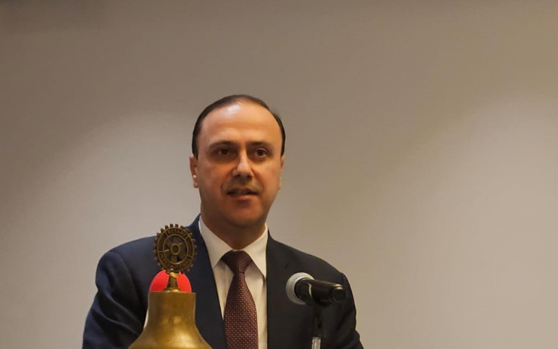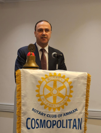بعد الكلمة والأسئلة والأجوبة، قدم رئيس النادي نصري الربضي للمومني علم الروتاري ورسالة تقدير.