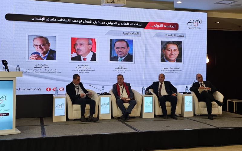 ويشارك في الجلسة الأولى وزير الخارجية ونائب رئيس الوزراء الأسبق، الدكتور مروان المعشر، ورئيس وحدة الحقوق الأساسية للمركز الوطني لحقوق الإنسان، عيسى الهواوشة، ومدير مركز القدس للدراسات السياسية، عريب الرنتاوي.