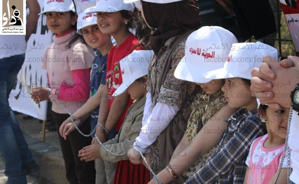 ورفع المشاركون في الاعتصام شعارات تتحدث عن معاناة الاسرى والاهل " السنوات تمضى ولم نسمع الا ودعوداً" كما نفذ ابناء الاسرى سلسلة بشرية امام الديوان الملكي.