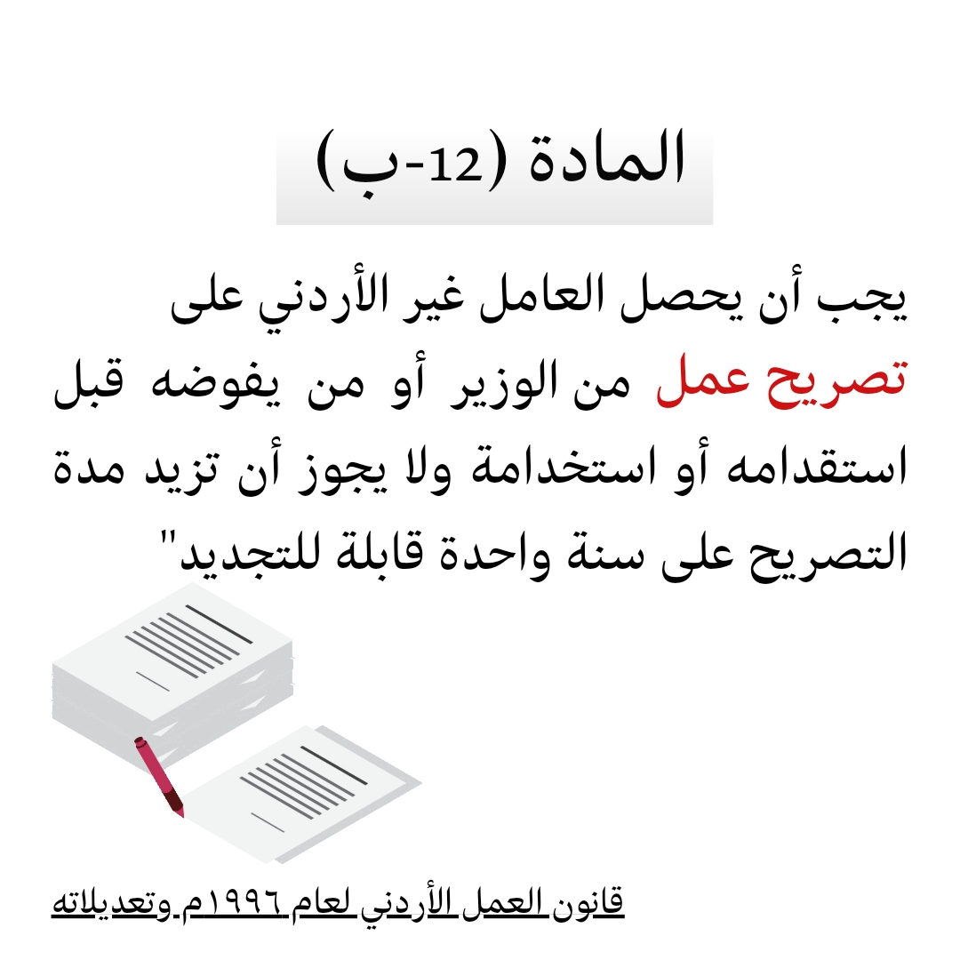 أما حفيظ عمل بقطاع الإنشاء يرى أن تصويب الأوضاع قد يرفع عن كاهله الغرامات المترتبة وهي 200 دينار عن كل سنة بلا تجديد تصريح، يصف معاناته بالقول " الكفيل متحكم فينا لو أعطاني براءة ذمة من أربع سنين ما تراكمت علي الغرامات " ولقد حمل وزارة العمل مسؤولية الوضع المالي والقلقل اليومي الذي يعيشه في الأردن.