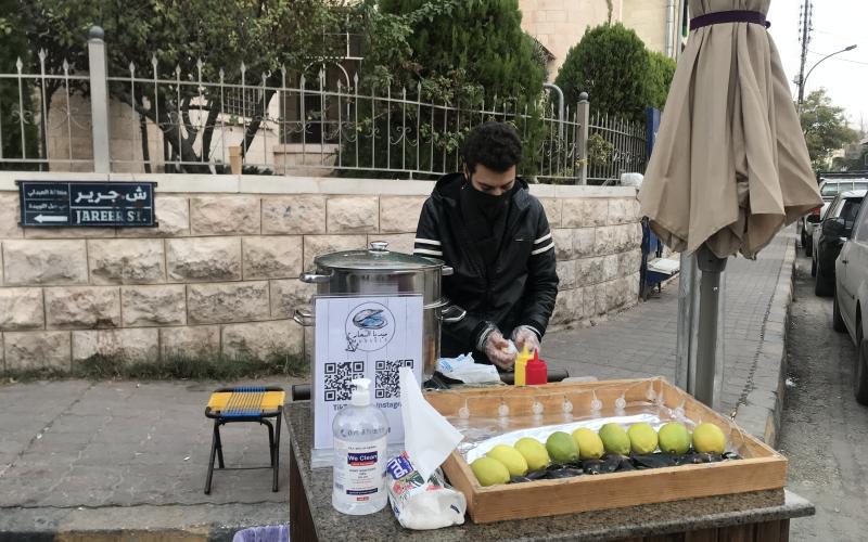 بعينيه المليئتينبالأمل, يقول نور ويداه مغلفتان بقفاز وهو يعصر الليمون على بلح البحر لبيعه: "أنا مبسوط جدًا إني ببيع بالشارع, وأتمنى إنه المشروع يكبر ويصير بأكثر من محافظة في الأردن, والواحد بظل متفائل بالجاي".