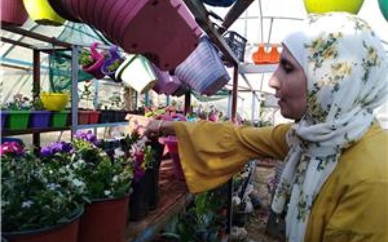 تتفقد نباتاتها في البيت البلاستيكي بين الساعة والأخرى حتى بعد ساعات الغروب ذلك لأنها تحتاج للرعاية والتسميد والتروية بالماء"هذه النبته بحاجة الى ماء... تلك الصبّارة تحتاج الى مكان دافئ... وتلك النبته تعطيني الأمل لأستمر في المشروع...".