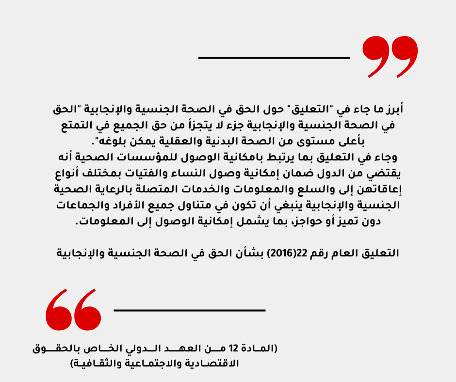 هذه المعيقات والتحديات تحول دون تمتع ذوي الاعاقة بحقهم بالصحة الجنسية والإنجابية، كما تعرفها منظمة الصحة العالمية هي حالة من السلامة الجسدية والنفسية والاجتماعية الكاملة في جميع الأمور المتعلقة بالجهاز التناسلي.