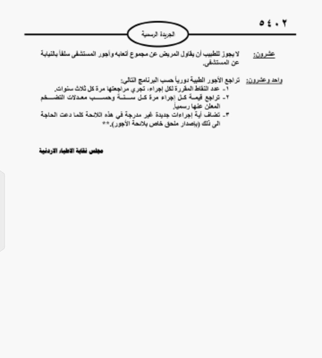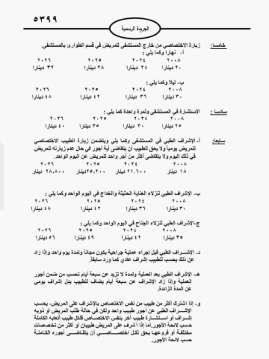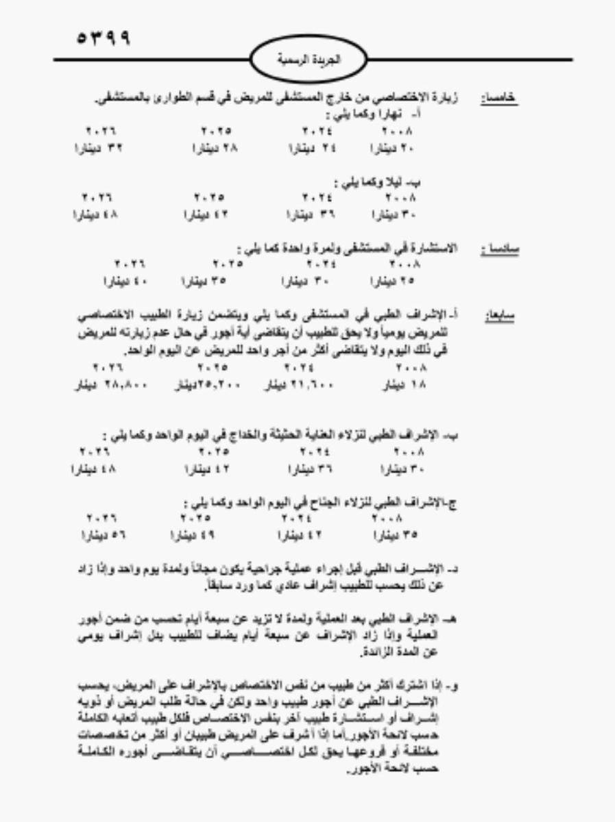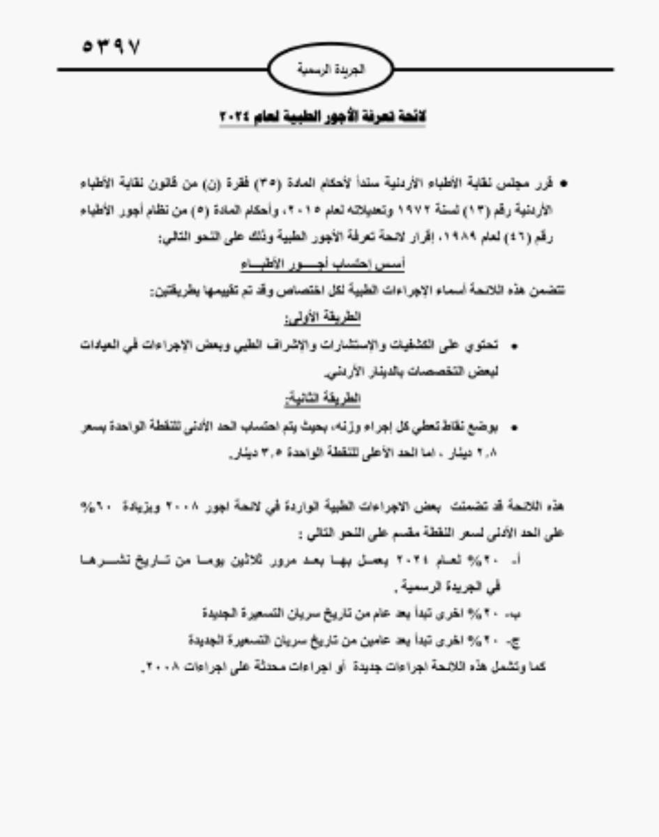 وكان وزير الصحة، قد قرر في شهر تموز الماضي، بإلغاء العمل بلائحة أجور 2024، والعودة إلى لائحة عام 2008، إلى حين تزويد نقابة الأطباء وزارة الصحة بلائحة تعرفة أجور طبية، وفقا لما تم التوافق عليه في اجتماعات اللجنة المشتركة، مستندا الوزير الى صلاحياته وفق المادة 47 من الدستور، والمادة 3 من قانون الصحة العامة رقم 47 لسنة 2008.