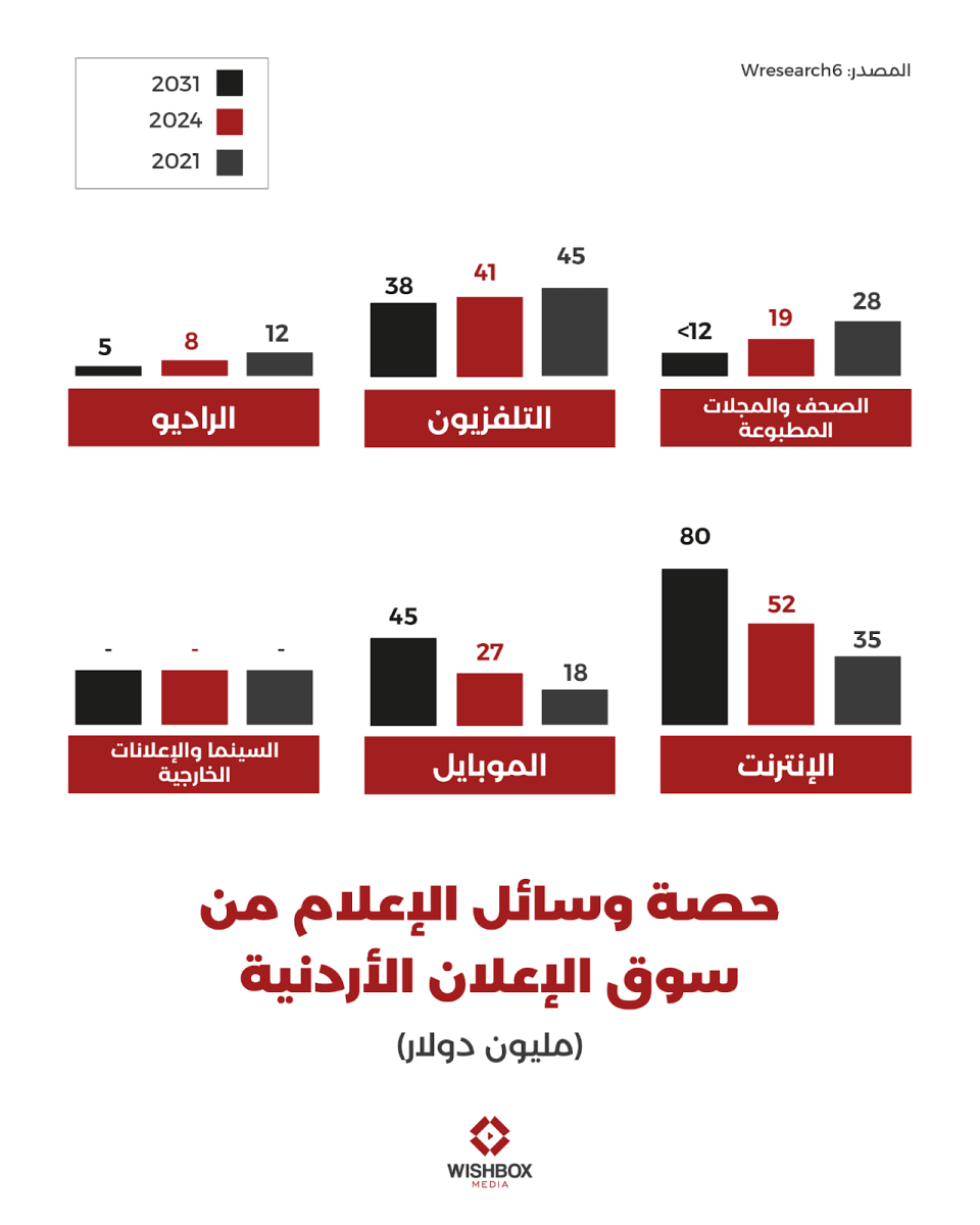 حصة وسائل الإعلام من سوق الإعلان الأردنية