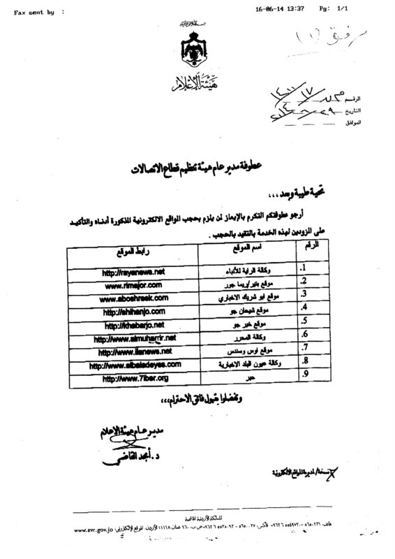 وكانت "دائرة المطبوعات والنشر " قد حجبت أكثر من 250 موقع إخباري في شهر تموز العام الماضي لعدم التزامهم بقانون المطبوعات.