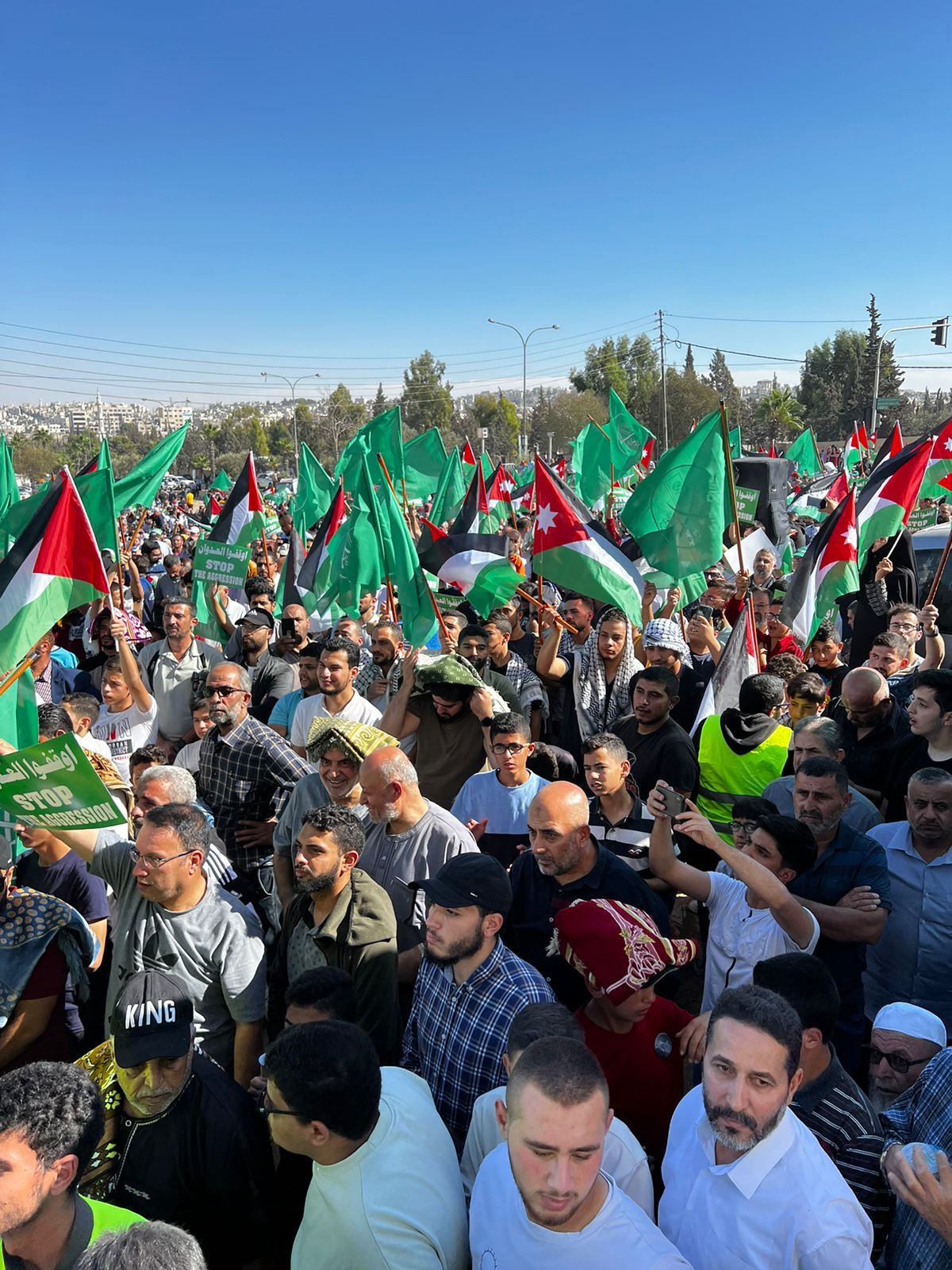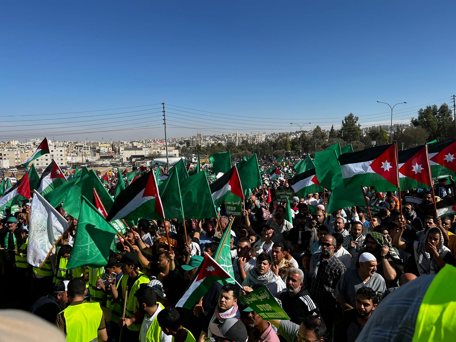 شاركت جموعٌ حاشدةٌ وكبيرة من الأردنيين، اليوم الجمعة في الفعالية التي دعت إليها الحركة الإسلامية، *في منطقة جبل الزهور في العاصمة عمّان*، نصرة لأهل غزة ودعما للمقاومة الباسلة ودفاعًا عن المسجد الأقصى المبارك.