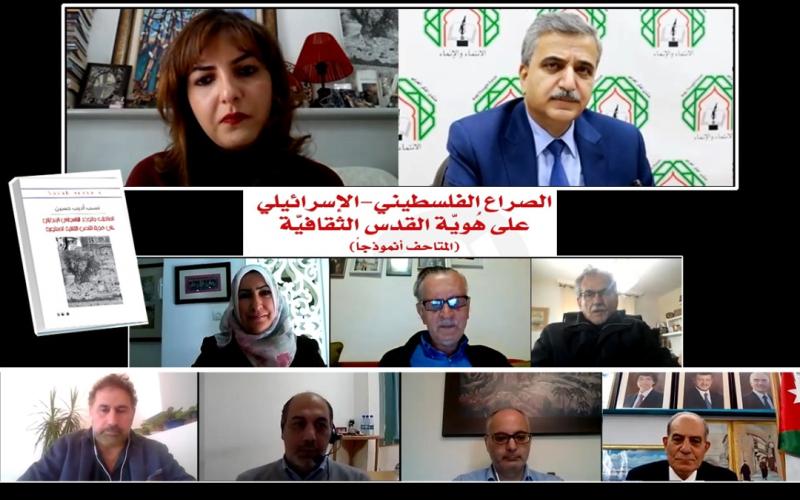 عقد منتدى الفكر العربي، يوم الأربعاء 9/12/2020، لقاءً حوارياً عبر تقنية الاتصال المرئي، حاضرت فيه د. نَسَب أديب حسين الباحثة الفلسطينية في الدراسات المقدسية والمديرة المؤسِسَة للبيت القديم/ متحف د. أديب القاسم حسين في الرامة، حول الصراع الفلسطيني – الإسرائيلي على هوية القدس (المتاحف أنموذجاً). وشارك بالمداخلات في اللقاء، الذي أداره د.محمد أبوحمور الوزيرالأسبق وأمين عام المنتدى، كل من: د. معاوية إبراهيم ممثل الأردن السابق في لجنة اليونسكو للتراث العالمي وأستاذ الآثار القديمة واللغات الشرقية، والأستاذ عبد الله كنعان أمين عام اللجنة الملكية لشؤون القدس في الأردن، و د.عمر عبد ربه أستاذ التاريخ وعلم الآثار ومدير الدراسات المقدسية في جامعة القدس، و د.ميرفت عياش من كلية الفنون التطبيقية في جامعة النجاح بنابلس، و الكاتب الفلسطيني أ. محمود شقير، والكاتب العراقي أ. علي بدر .