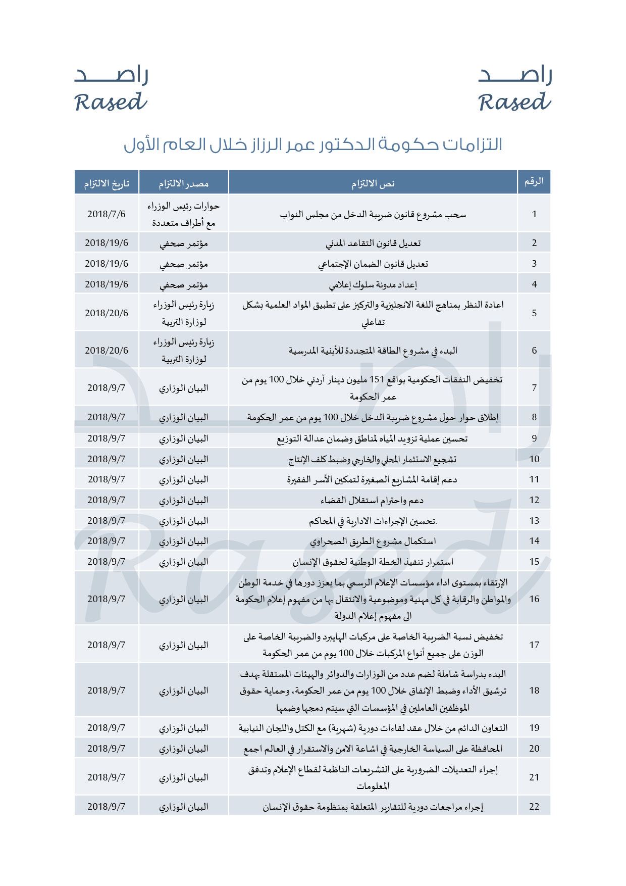راصد: 299التزاماً لحكومة الرزاز خلال العام الأول.