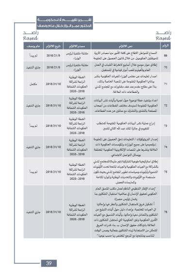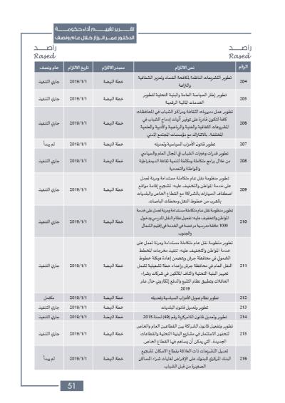 301 التزام التزمت بها حكومة الرزاز خلال عام ونصف اكتمل منها 18% و68% منها جاري العمل عليها