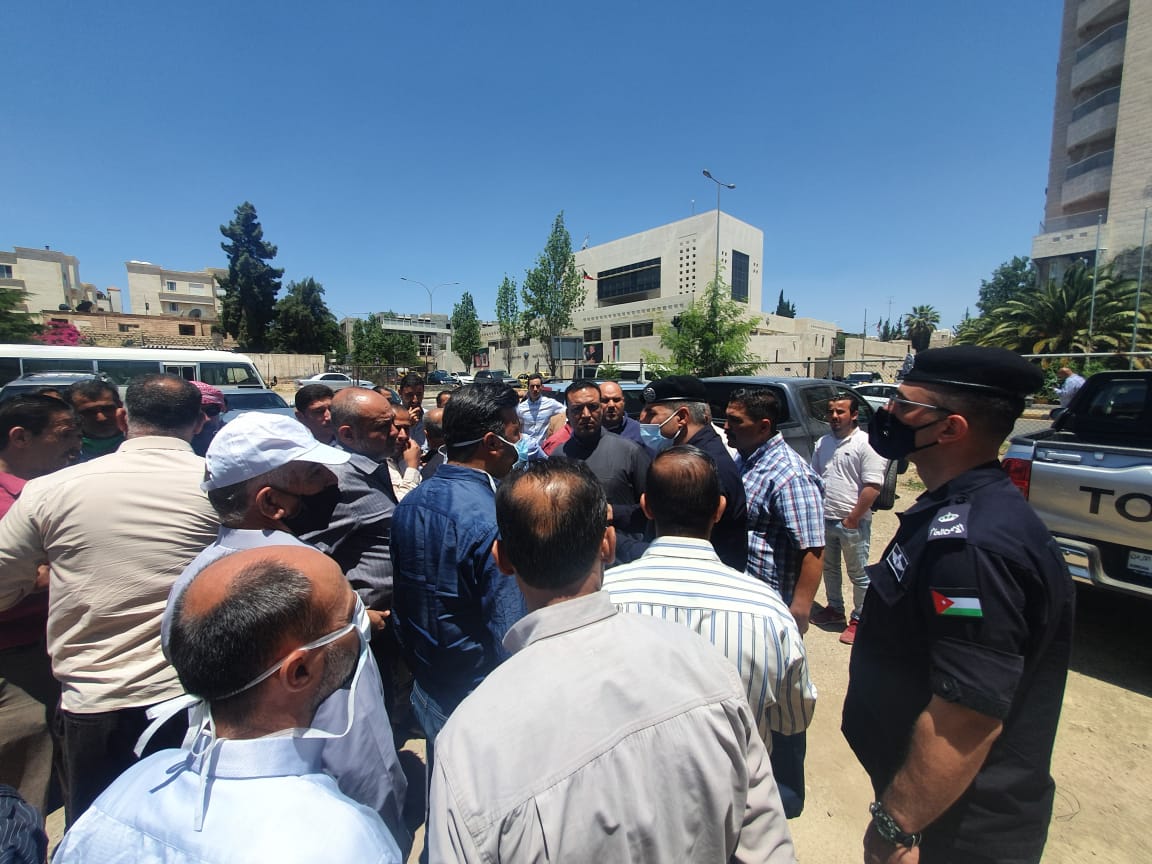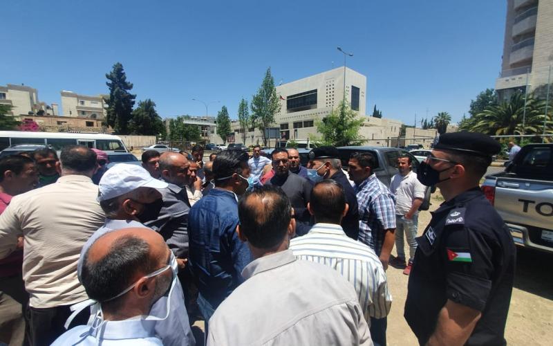اعتصم عشرات السائقين في قطاع النقل العام اليوم الثلاثاء، أمام مركز إدارة الأزمات، مطالبين بتقديم الدعم للعاملين في القطاع الذين تضرروا جراء الإجراءات الحكومية لمواجهة فيروس كورونا.