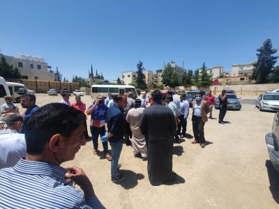 بينما اعتصم سائقو السفريات في منطقة العبدلي، مطالبة لنقل الركاب من حدود العمري، عوضا عن تشغيل حافلات سياحية التي أصبحت تنافسهم.