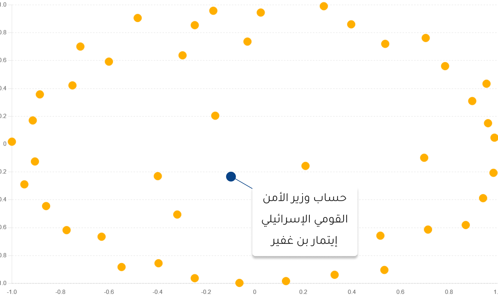 ويُظهر تحليل شبكي أجراه معد التحقيق لحسابات ناشري المحتوى العنيف، أن الرابط المشترك بينهم هو متابعتهم لحساب وزير الأمن القومي الإسرائيلي إيتمار بن غفير، الذي تشكل صفحته الرسمية على فيسبوك، عقدة مركزية تدور في فلكها حسابات العينة.