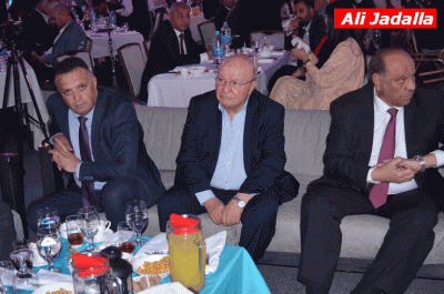 رئيس مجلس إدارة مركز حماية وحرية الصحفيين، راعي الأمسية، دولة السيد طاهر المصري صعد إلى منصة الاحتفالية لتكريم الجميع، وأثنى على جهودهم في دعم حرية التعبير والإعلام.