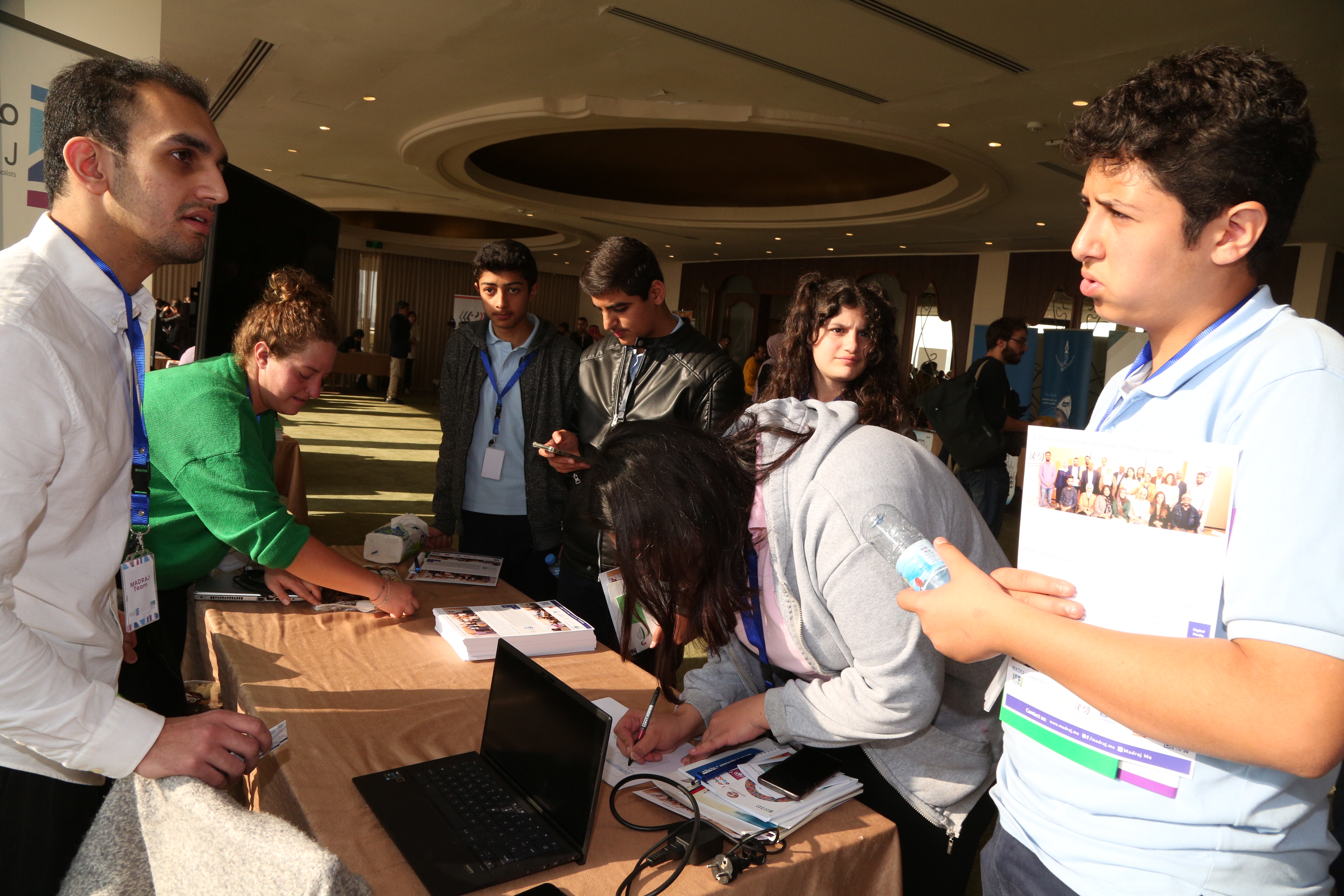 من جمعية معهد تضامن النساء الأردني شاركت الباحثة زهور غرايبة والمحامية المتدربة أريان قويدر وأكدتا أهمية الفعالية لتعريف طلبة المدارس واطلاعهم على مفاهيم حقوق الإنسان منذ نشأتهم وتعريفهم ببعض المفاهيم الحقوقية وواجباتهم وحقوقهم.
