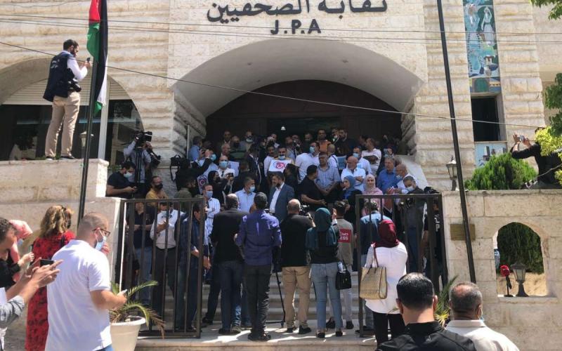 شارك عشرات الصحفيين في الوقفة الاحتجاجية التي دعت إليها تنسيقية المواقع الإلكترونية، ظهر الأحد، أمام مبنى نقابة الصحفيين، وذلك رفضا للتعديلات التي أجرتها حكومة الدكتور بشر الخصاونة على أنظمة الإعلام.