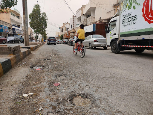 يعزو الصميعات وجود الحفر إلى عدم تأسيس بنية تحتية ملائمة للطرق مثل توفير عبارات المياه التي تمنع تلف الشوارع وتآكل الاسفلت "الزفتة". يقول وهو يشير إلى الشارع:" هون مياه البلد كلها بتنزل… فعلًا الناس بدهم زوارق حتى يتعدوا المنطقة."