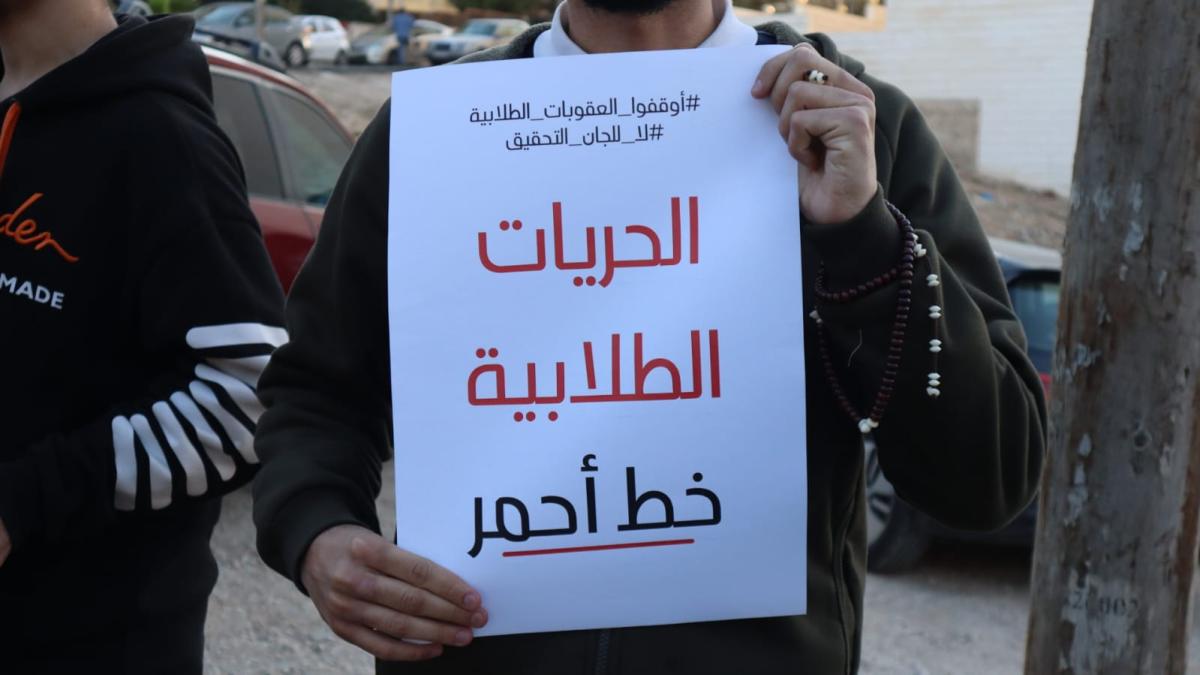 وجائت الوقفة الطلابية بعنوان ألغوا "العقوبات الطلابية، لا للجان التحقيق" وبمشاركة طلاب من الجامعة الهاشمية والجامعة الأردنية وجامعة العلوم الإسلامية وبحضور مجموعة من النواب من بينهم النائب الاستاذ معتز الهروط والنائب د.نبيل الشيشاني والنائب الدكتور أيمن أبو الرب والنائب المهندسة راكين أبو هانية، حيث أكد النواب المشاركون على حق الطلبة في تنظيم الفعاليات الداعمة لغزة وعدم التضييق عليهم في نشاطهم الطلابي.