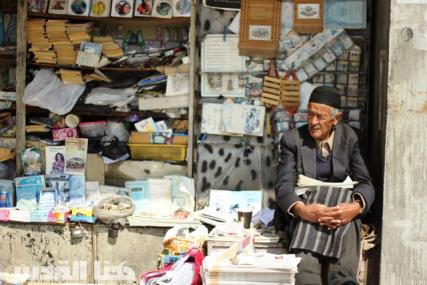 الحاج مصباح شبانة (82 عاما)، يبيع الصحف على بسطة قديمة، اهترأ ما يعتليها من كتب ومجلات، تراه جالسا يحتسي كوبًا من الشاي الساخن يوميًا، أو مُمَدِدًا جسده الهزيل آخذا قسطًا من الراحة.