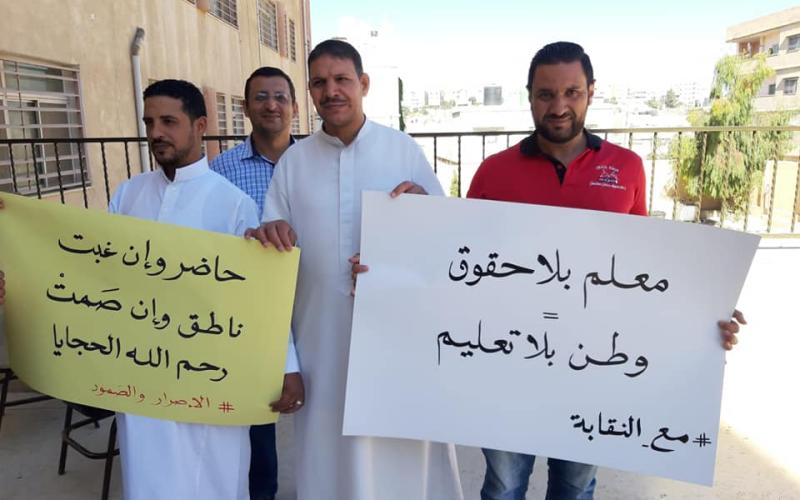 هذا وتنفي نقابة المعلمين وفق بيان صادر عنها ما تم نشره من أنباء عن كسر الإضراب في بعض المدارس اليوم الأحد، مؤكدة بأنه غير صحيح وأن نسبة الإضراب وصل الى 100% في كل محافظات المملكة.