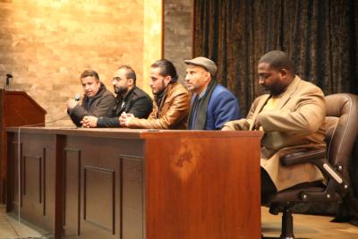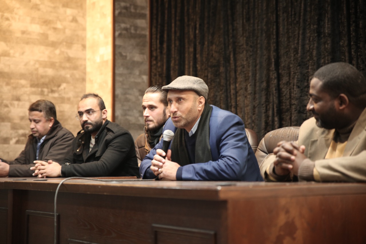 وتحدث الإعلامي مصطفى صقر المشرف على هذا العمل الفني حول ظروف إنتاج الفيلم والقائمين عليه كما تحدث كل من الفنانين يوسف كيوان وأحمد عياش الذين قاما ببطولة الفيلم ، وشدد كيوان "على أهمية هذا العمل الفني في تشكيل الوعي المجتمعي والرسالة التي يحملها لا سيما في ظل التهافت على التطبيع من قبل الأنظمة الرسمية وبما لا يعبر عم إرادة الشعوب"، بينما اكد عياش "أن القضية الفلسطينية تمثل أمانة في عنق كل عربي ومسلم".