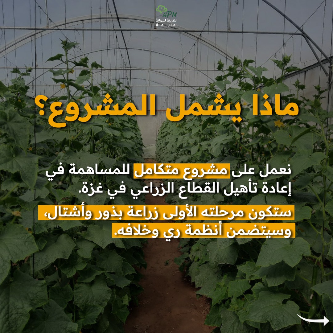 الأمر الذي دفع المنظمة العربية لحماية الطبيعة إلى تنفيذ حملة لإعادة تأهيل القطاع الزراعي، والمشاركة في مواجهة حرب التجويع المستمرة، استجابة لنداءات مزارعي غزة.
