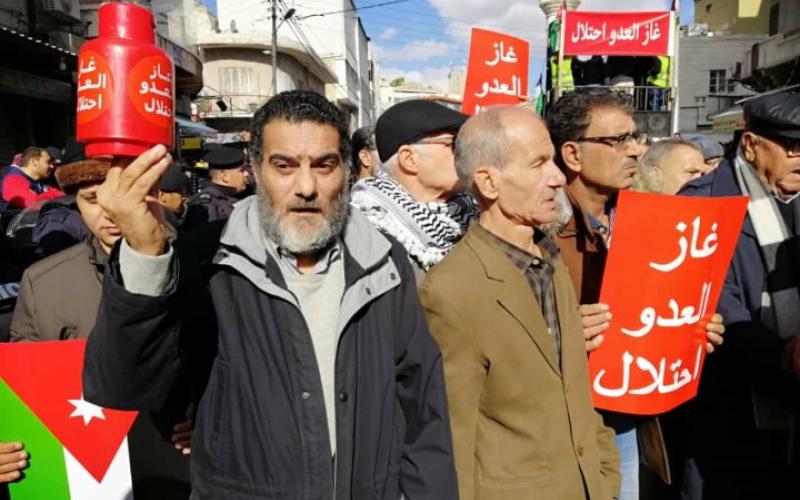 ندد مئات الأردنيين بمسيرة في وسط البلد عمان يوم الجمعة ببدء ضخ الغاز الاسرائيلي ضمن الاتفاقية التي وقعتها شركة الكهرباء الأردنية في 2016 مع شركة نوبل إنيرجي الأميركية صاحبة الامتياز بالتنقيب عن الغاز مع تحالف شركات اسرائيلية من حقل “ليفياثان” للغاز الطبيعي في البحر المتوسط.
