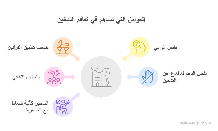 هذه الحالة تخلق ثقافة تنظيمية تقوض الرقابة وتجعل من المستحيل عملياً على الموظف غير المقلع عن التدخين أن يطبق غرامات صارمة على الجمهور. بالتالي، فإن تطبيق قانون الصحة العامة، رغم أهميته النظرية، يظل مشلولاً في الواقع العملي.