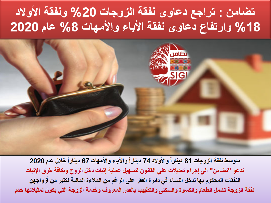 تضامن : تراجع دعاوى نفقة الزوجات 20% ونفقة الأولاد 18% وارتفاع دعاوى نفقة الأباء والأمهات 8% عام 2020