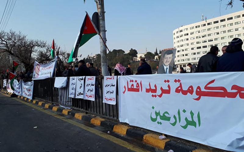 وفي العاشر من شهر كانون الثاني الماضي؛ نفّذ تجمع مزارعي الأردني وقفةً احتجاجيّةً أمام وزارة الزراعة؛ للمطالبة بحل أزماتهم المتشابكة كـ: التسويق الزراعي، العمالة الوافدة، الإعفاء من فوائد القروض الزراعي.