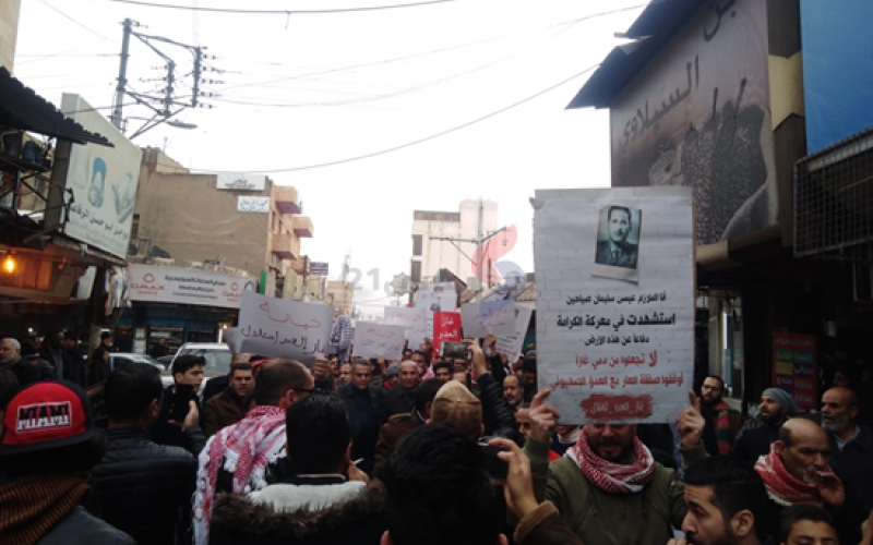 وأضاف: "النظام الأردني يصر على ربط كل مواطن مع الكيان الصهيوني، نوصل رسالة إلى النظام في الأردن، نرفض هذا التطبيع الإجباري من الشمال إلى الجنوب".