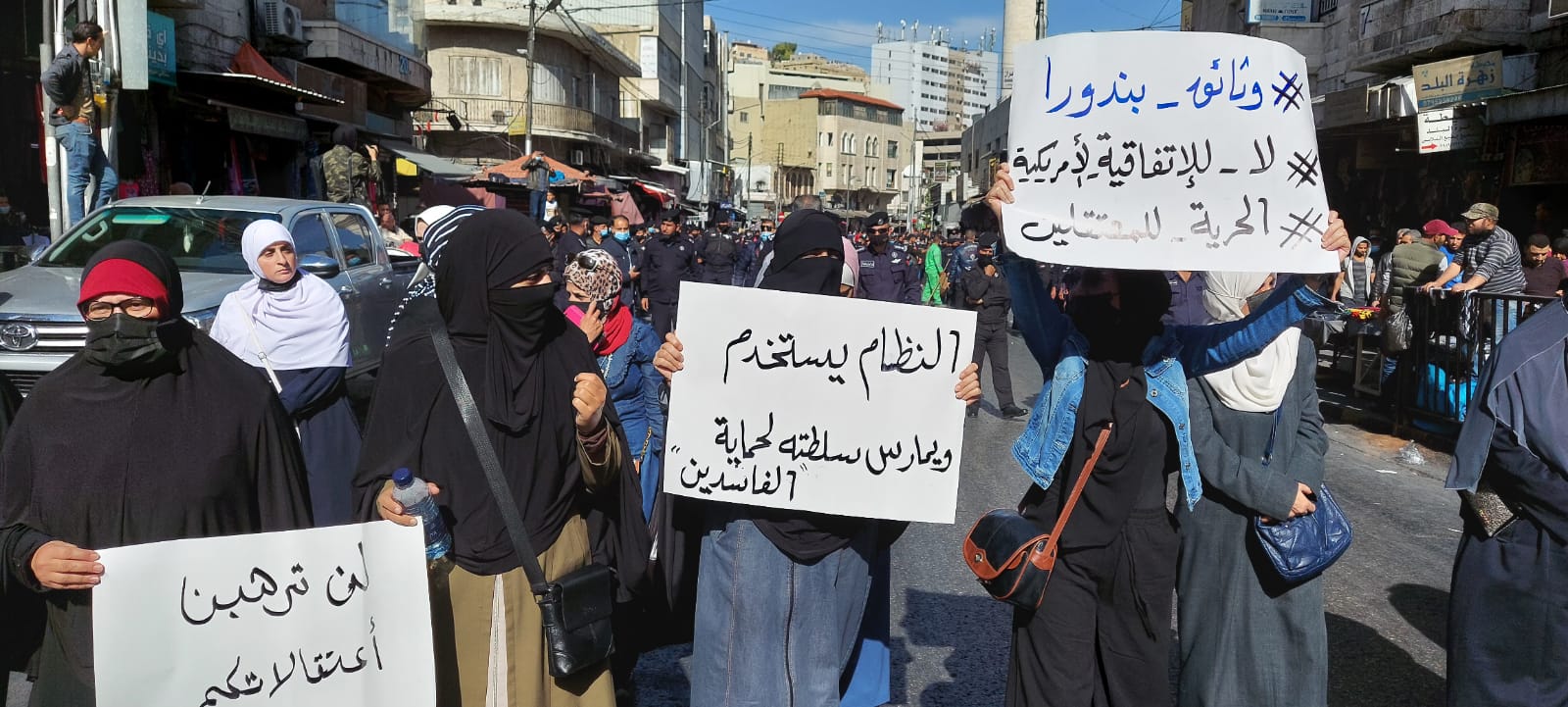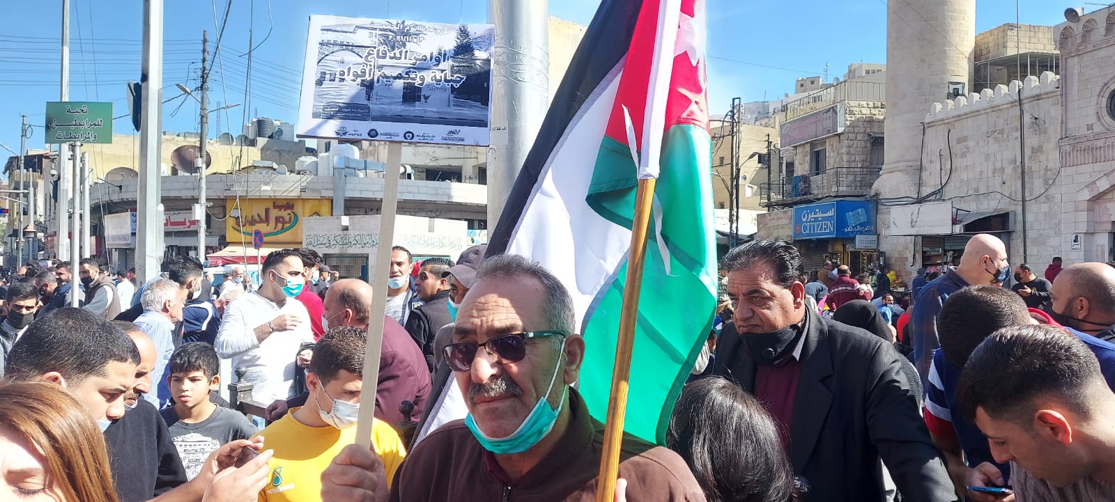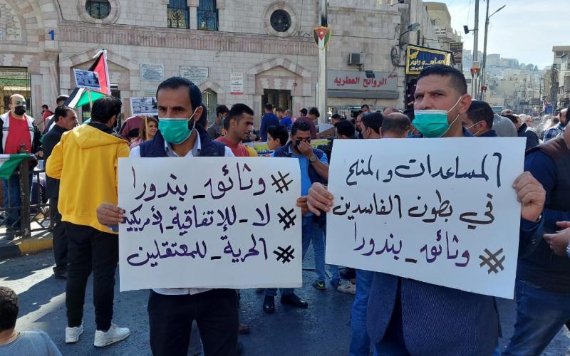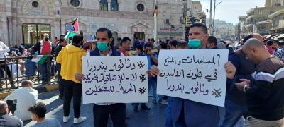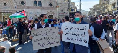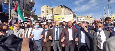 نفذت أحزاب وقوى وطنية إلى التظاهر اليوم الجمعة مسيرة احتجاجية بعد صلاة الجمعة أمام المسجد الحسيني بوسط العاصمة عمان، للمطالبة بوقف تفعيل قانون الدفاع، واحتجاجاً على سياسة رفع أسعار السلع والمحروقات.